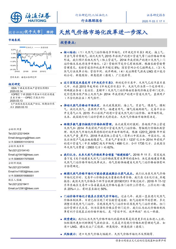 【海通证券】【20200317】石油化工行业跟踪报告:天然气价格市场化改革进一步深入-2页