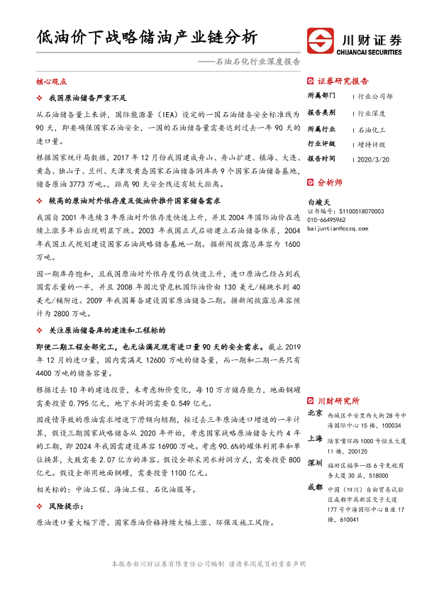 【川财证券】【20200320】石油石化行业深度报告:低油价下战略储油产业链分析-18页