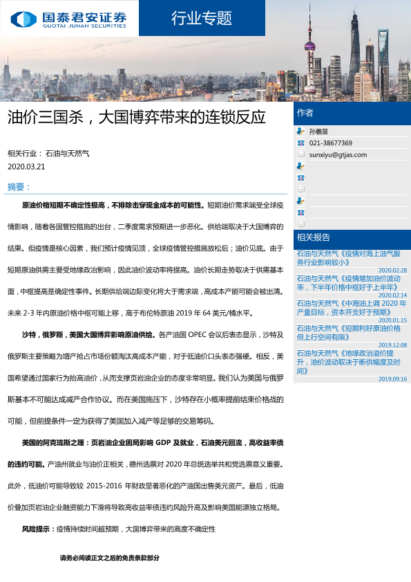 【国泰君安证券】【20200321】油价三国杀,大国博弈带来的连锁反应-30页