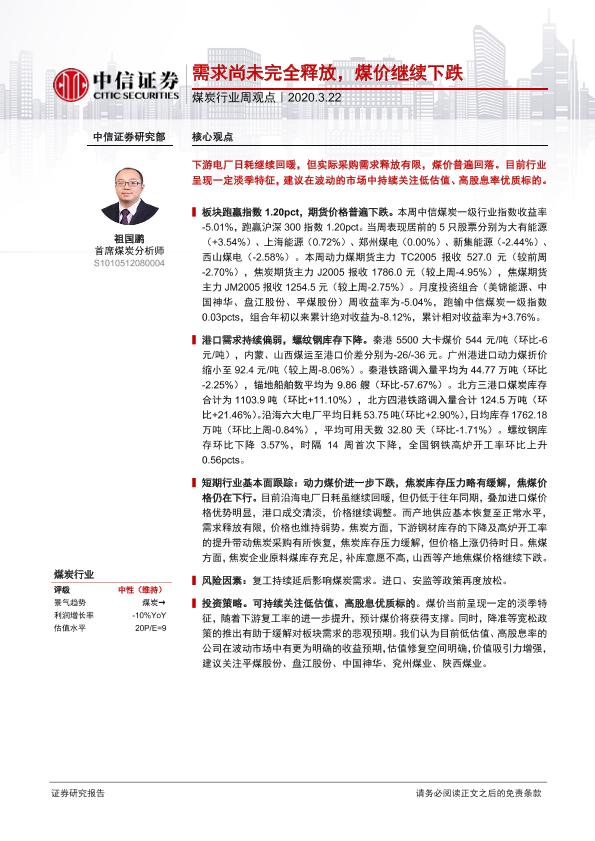 【中信证券】【20200322】20200322-中信证券-煤炭行业周观点:需求尚未完全释放,煤价继续下跌-7页