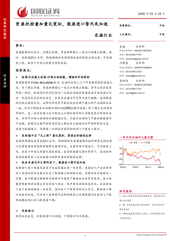 【国联证券】【20200324】采掘行业:资源把控叠加量化宽松,能源进口替代或加速-4页