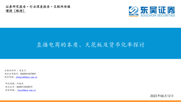 【东吴证券】【20220612】互联网传媒行业深度报告:直播电商的本质、天花板及货币化率探讨-40页