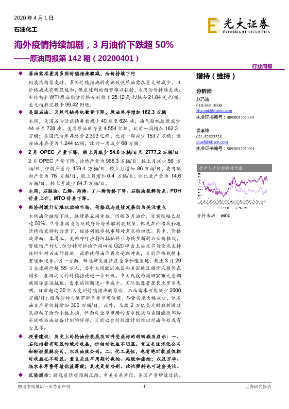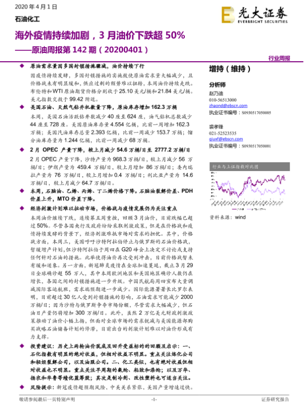 【光大证券】【20200401】海外疫情持续加剧,3月油价下跌超50%-12页