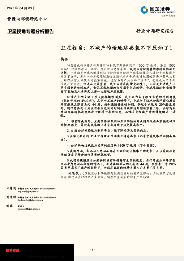 【国金证券】【20200403】油气行业卫星视角专题分析报告:不减产的话地球要装不下原油了!-10页