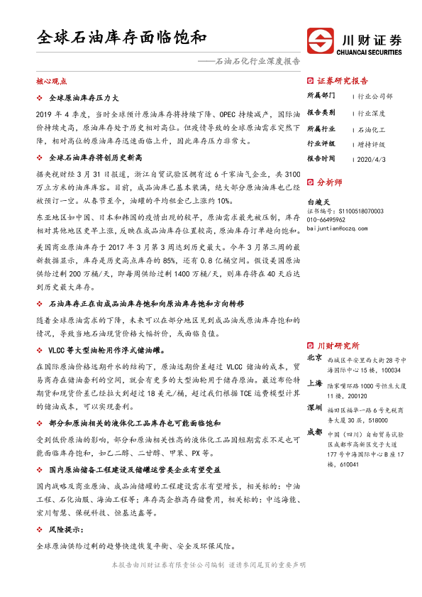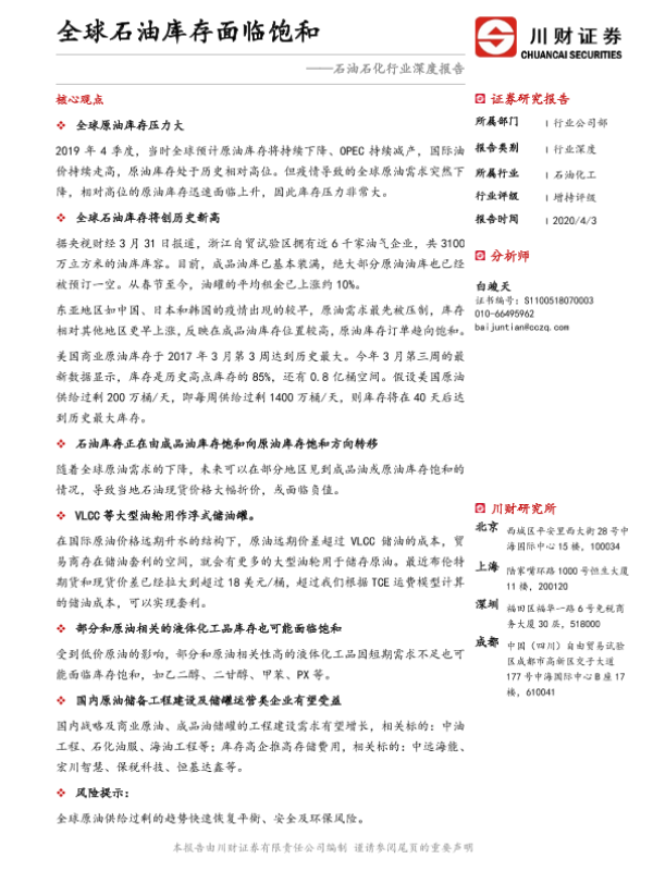 【川财证券】【20200403】石油石化行业深度报告:全球石油库存面临饱和-14页