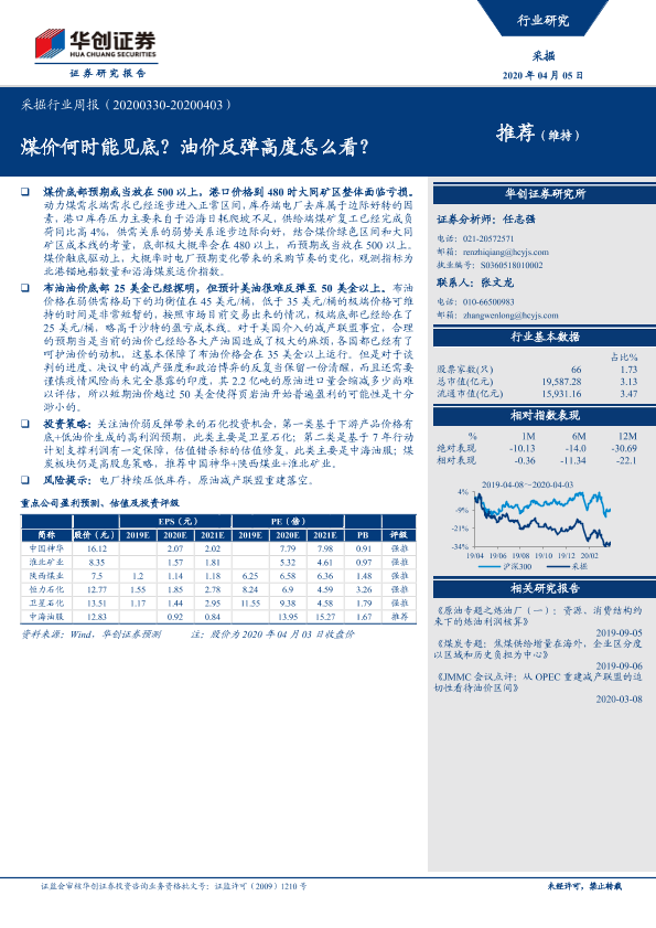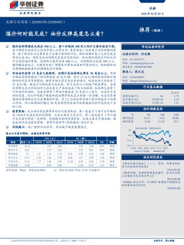 【华创证券】【20200405】20200405-华创证券-采掘行业周报:煤价何时能见底?油价反弹高度怎么看?-13页