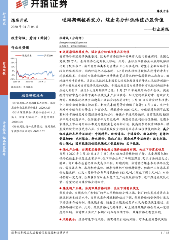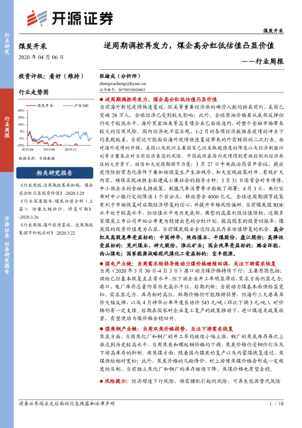 【开源证券】【20200406】20200406-开源证券-煤炭开采行业周报:逆周期调控再发力,煤企高分红低估值凸显价值-18页