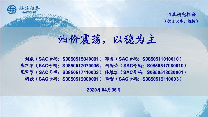 【海通证券】【20200406】石油化工行业研究:油价震荡,以稳为主-43页