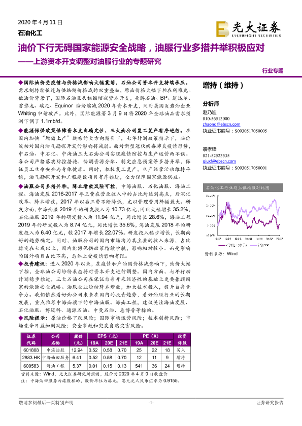 【光大证券】【20200411】上游资本开支调整对油服行业的专题研究:油价下行无碍国家能源安全战略,油服行业多措并举积极应对-21页