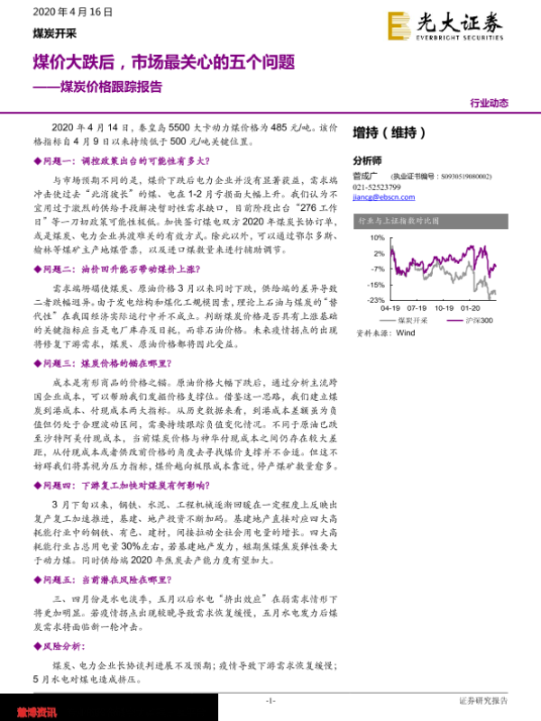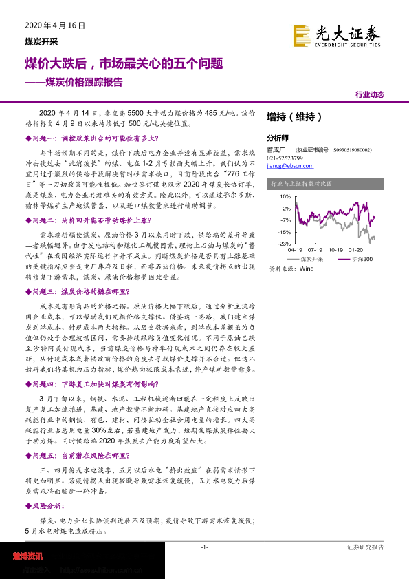 【光大证券】【20200416】煤价大跌后,市场最关心的五个问题-15页