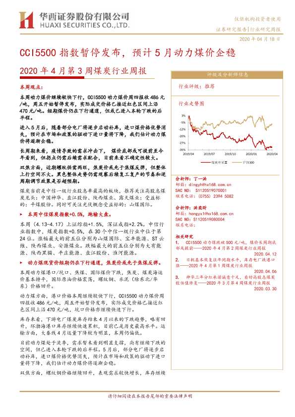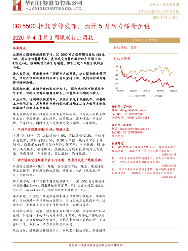 【华西证券】【20200418】2020年4月第3周煤炭行业周报:CCI5500指数暂停发布,预计5月动力煤价企稳-21页