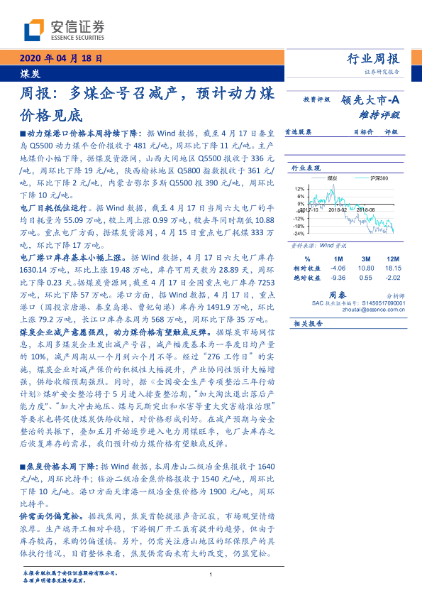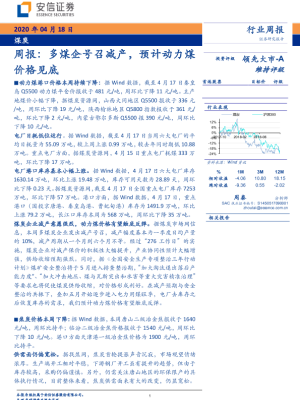 【安信证券】【20200418】20200418-安信证券-煤炭周报:多煤企号召减产,预计动力煤价格见底-27页