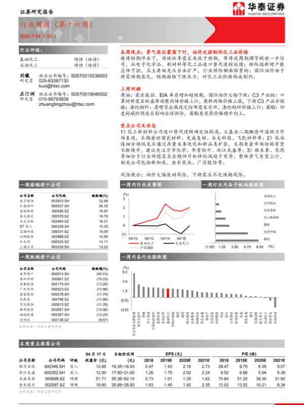 【华泰证券】【20200419】20200419-华泰证券-石油化工行业周报(第十六周)-19页