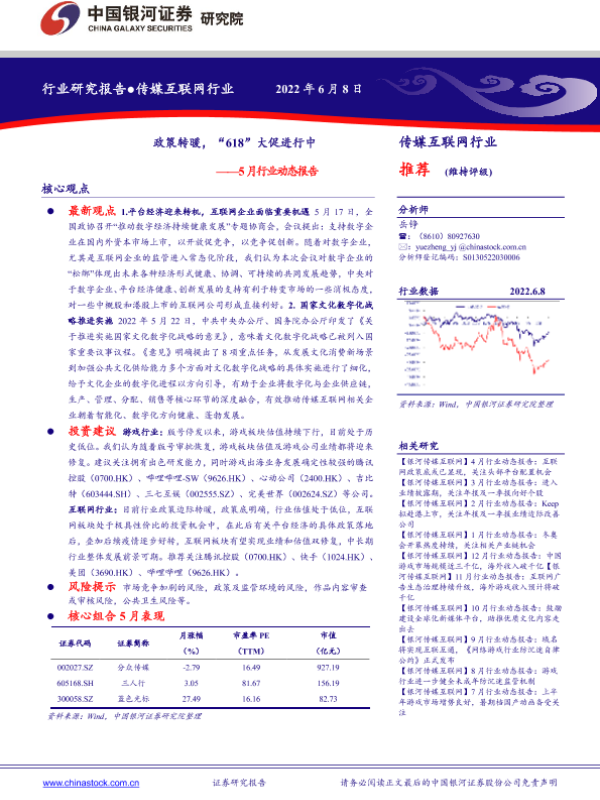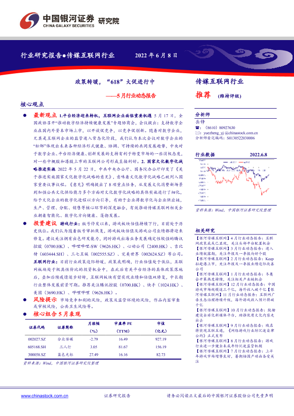 【银河证券】【20220608】传媒互联网行业5月行业动态报告:政策转暖,“618”大促进行中-20页