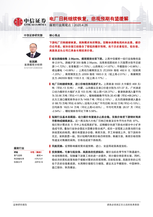 【中信证券】【20200426】20200426-中信证券-煤炭行业周观点:电厂日耗继续恢复,悲观预期有望缓解-7页