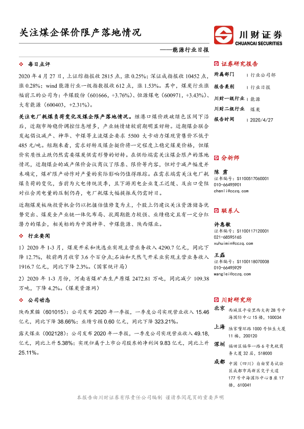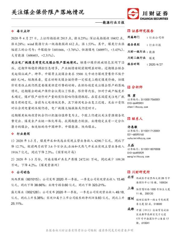 【川财证券】【20200427】能源行业日报:关注煤企保价限产落地情况-3页