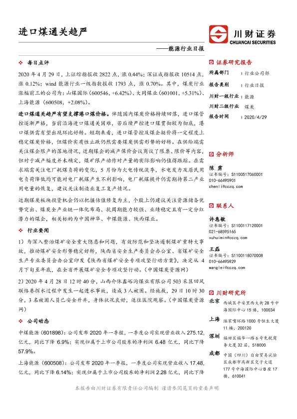 【川财证券】【20200429】能源行业日报:进口煤通关趋严-3页