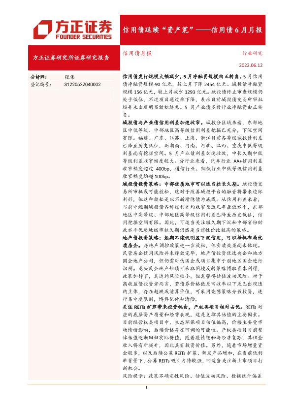【方正证券】【20220612】信用债6月月报:信用债延续“资产荒”-20页