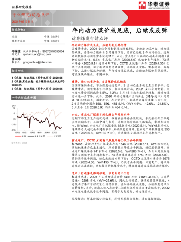 【华泰证券】【20200511】20200511-华泰证券-近期煤炭行情点评:年内动力煤价或见底,后续或反弹-7页