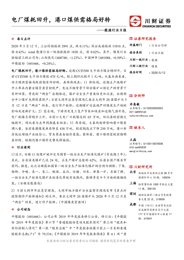 【川财证券】【20200512】能源行业日报:电厂煤耗回升,港口煤供需格局好转-3页