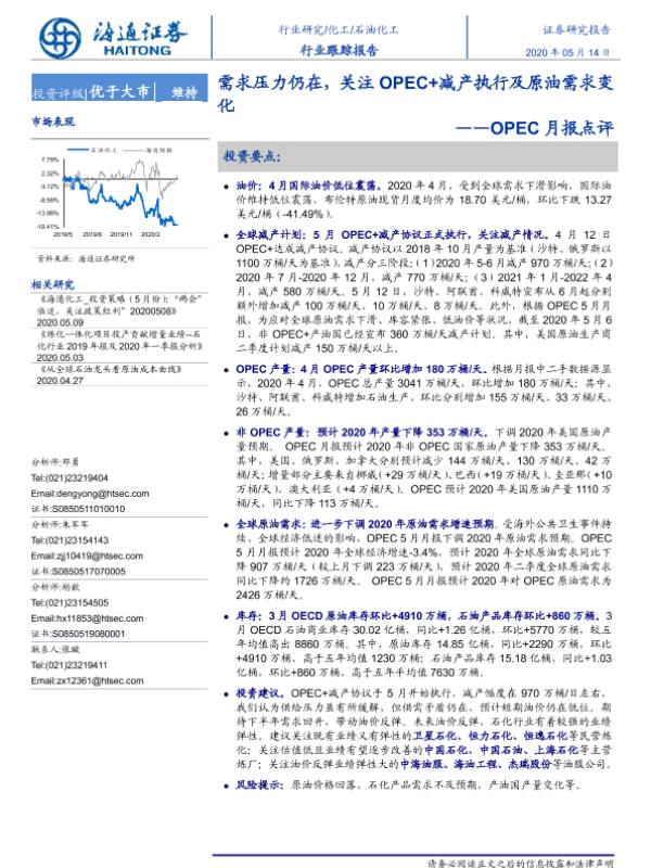【海通证券】【20200514】20200514-海通证券-石油化工OPEC月报点评:需求压力仍在,关注OPEC+减产执行及原油需求变化-5页
