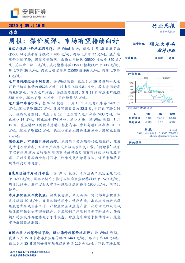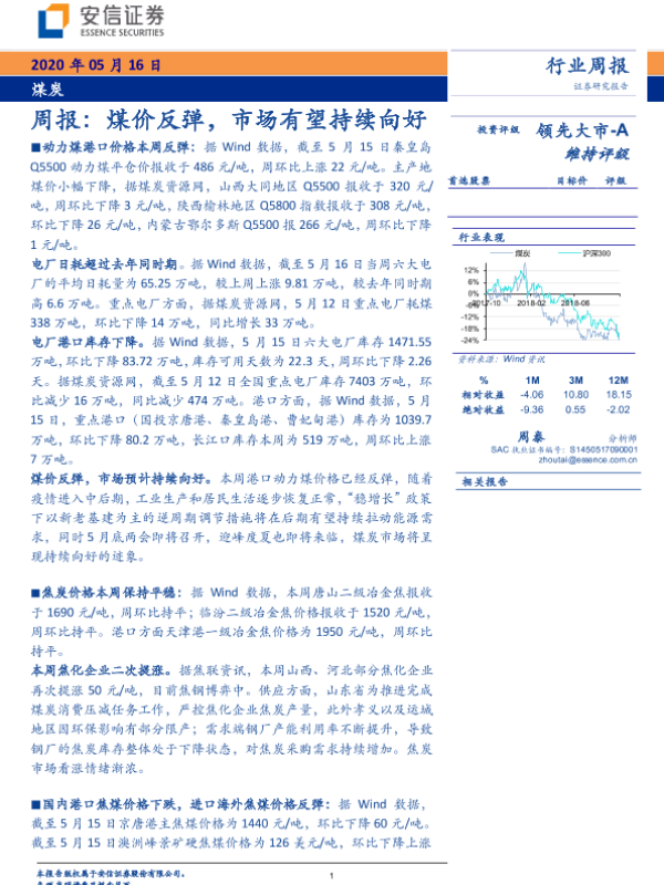 【安信证券】【20200516】20200516-安信证券-煤炭周报:煤价反弹,市场有望持续向好-25页
