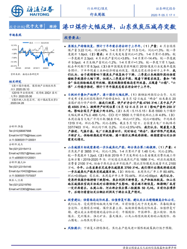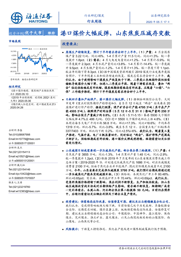 【海通证券】【20200517】20200517-海通证券-煤炭行业周报:港口煤价大幅反弹,山东焦炭压减存变数-2页