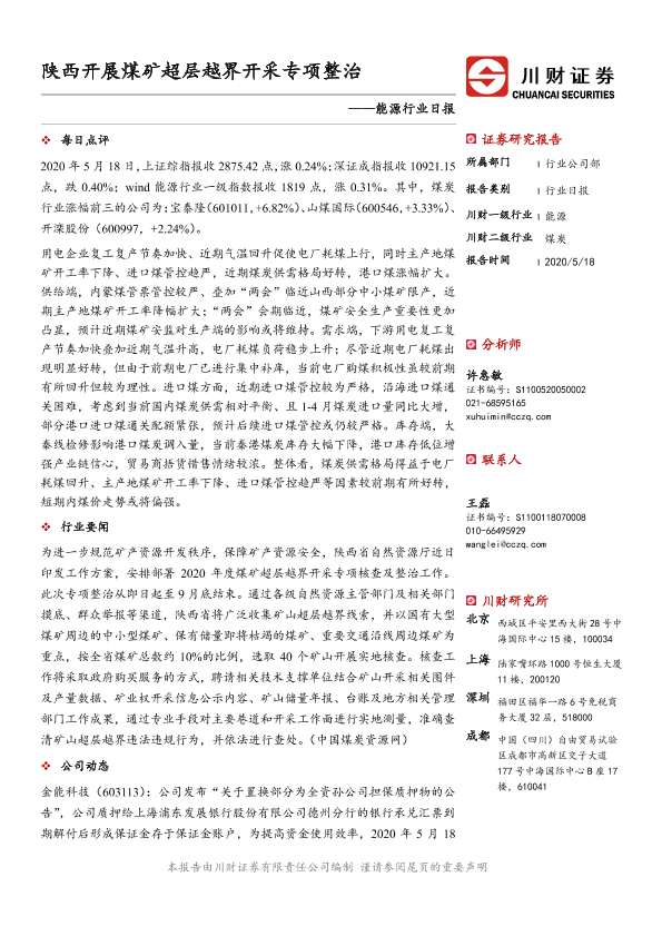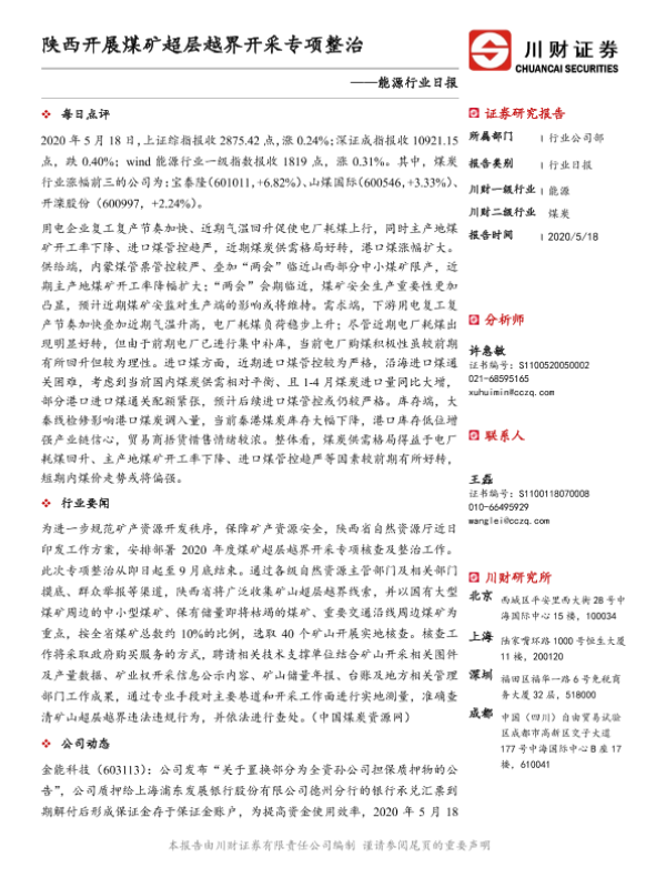 【川财证券】【20200518】能源行业日报:陕西开展煤矿超层越界开采专项整治-3页
