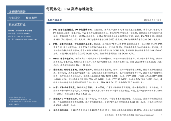 【信达证券】【20200518】20200518-信达证券-每周炼化:PTA高库存难消化!-9页