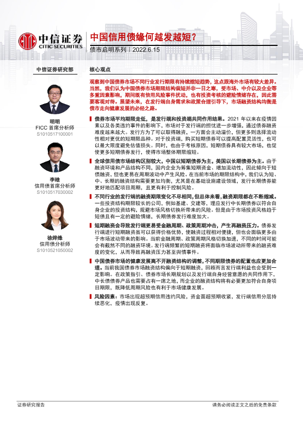 【中信证券】【20220615】债市启明系列:中国信用债缘何越发越短?-30页