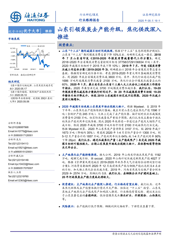 【海通证券】【20200519】20200519-海通证券-煤炭行业跟踪报告:山东引领焦炭去产能升级,焦化供改深入推进-2页