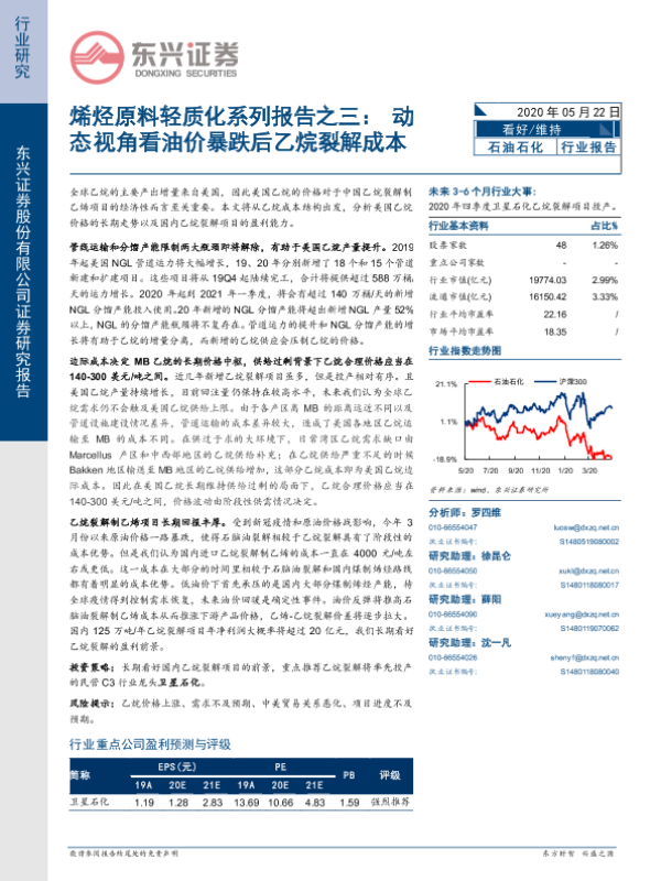 【东兴证券】【20200522】烯烃原料轻质化系列报告之三:动态视角看油价暴跌后乙烷裂解成本-16页