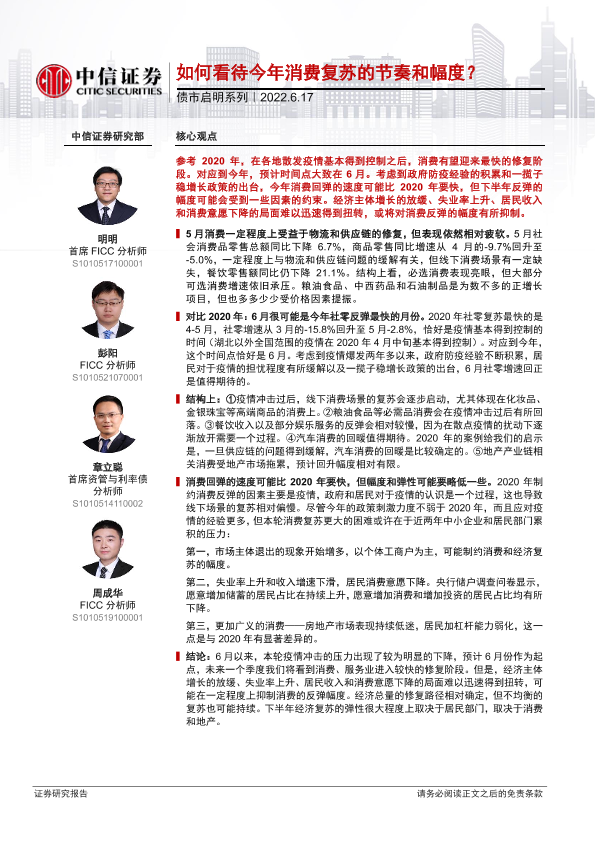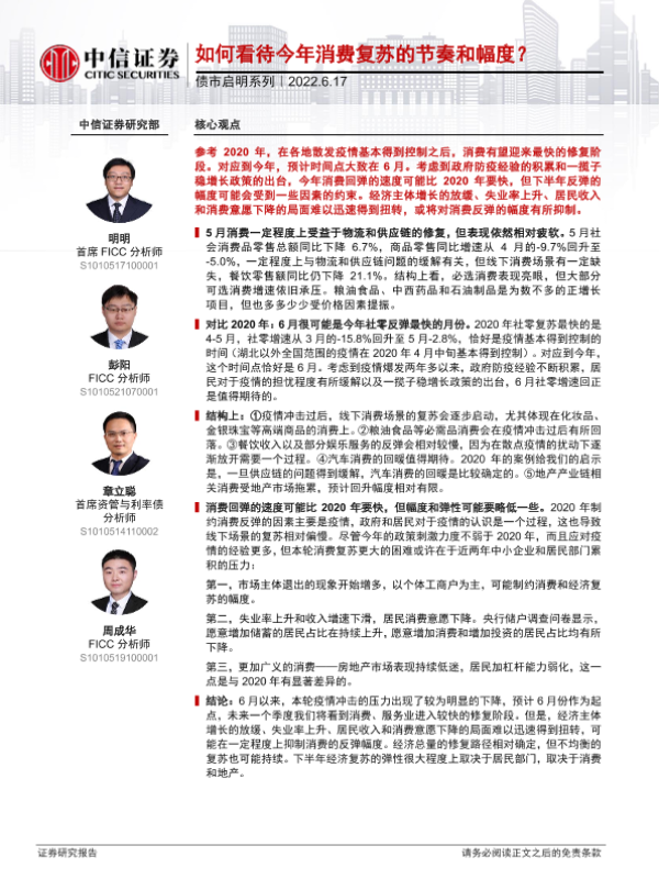 【中信证券】【20220617】债市启明系列:如何看待今年消费复苏的节奏和幅度?-30页