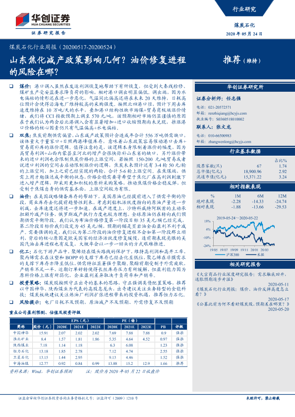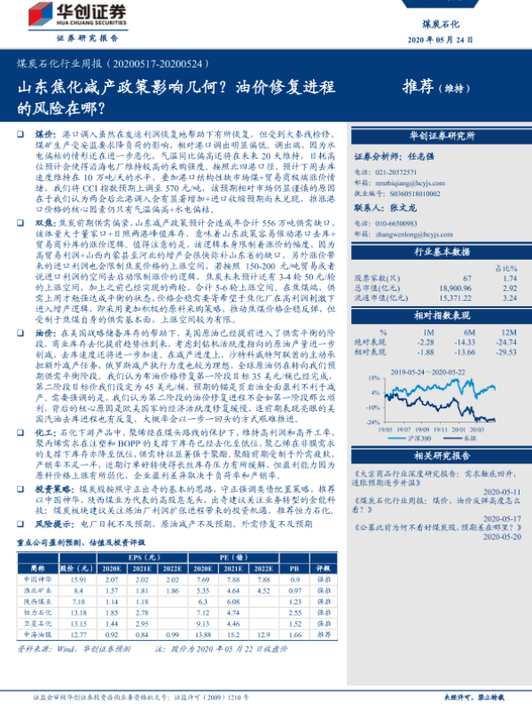【华创证券】【20200524】20200524-华创证券-煤炭石化行业周报:山东焦化减产政策影响几何?油价修复进程的风险在哪?-20页