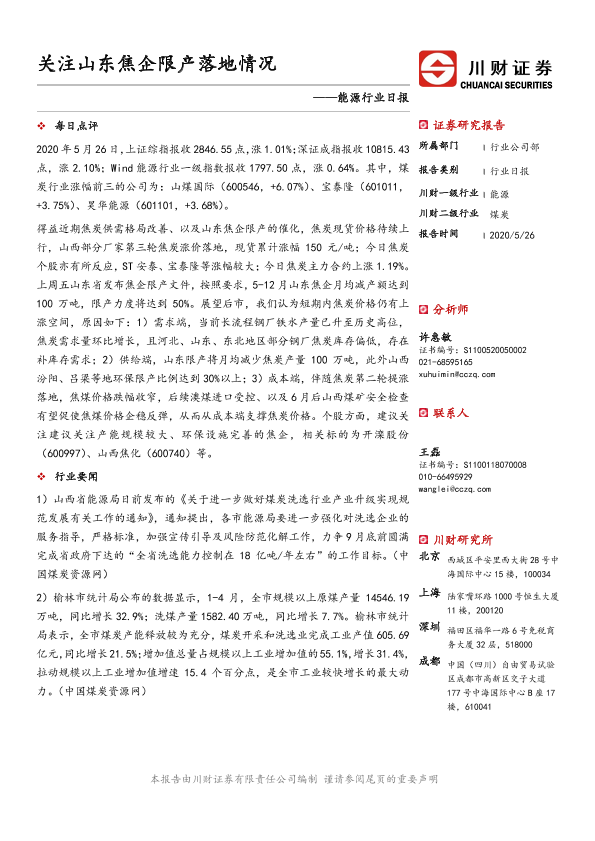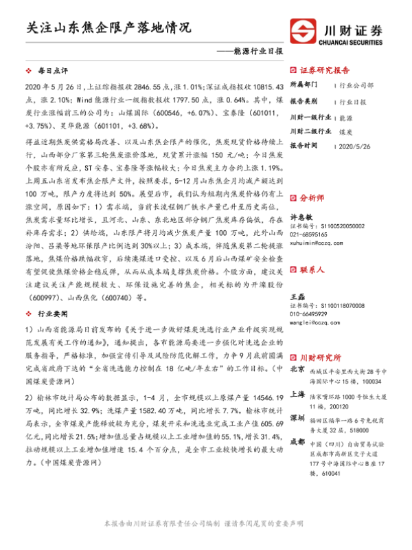 【川财证券】【20200526】能源行业日报:关注山东焦企限产落地情况-3页