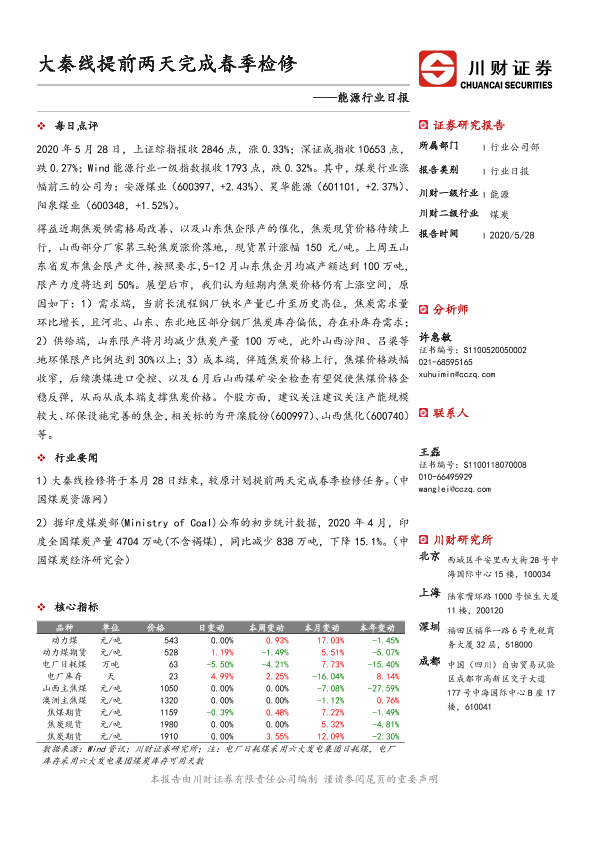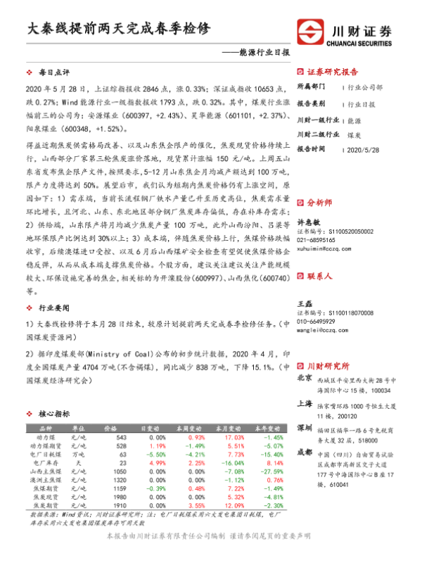 【川财证券】【20200528】能源行业日报:大秦线提前两天完成春季检修-3页