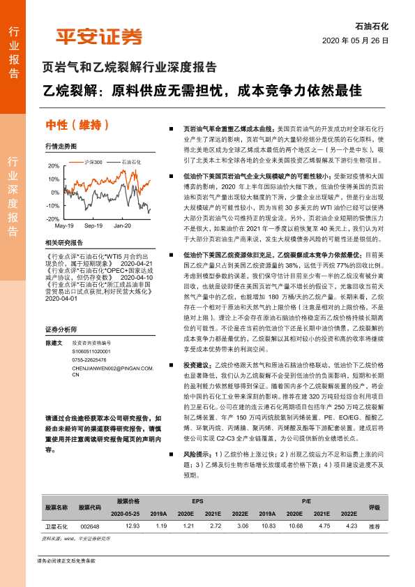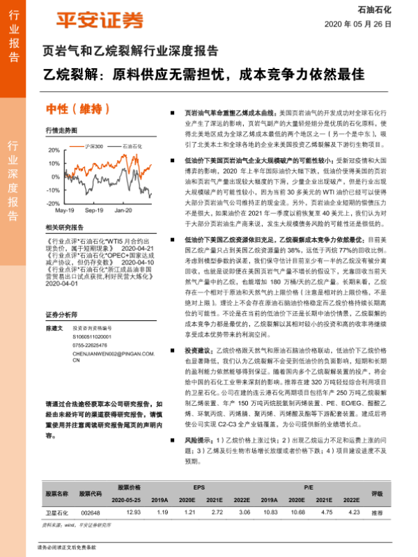 【平安证券】【20200526】页岩气和乙烷裂解行业深度报告:乙烷裂解:原料供应无需担忧,成本竞争力依然最佳-18页