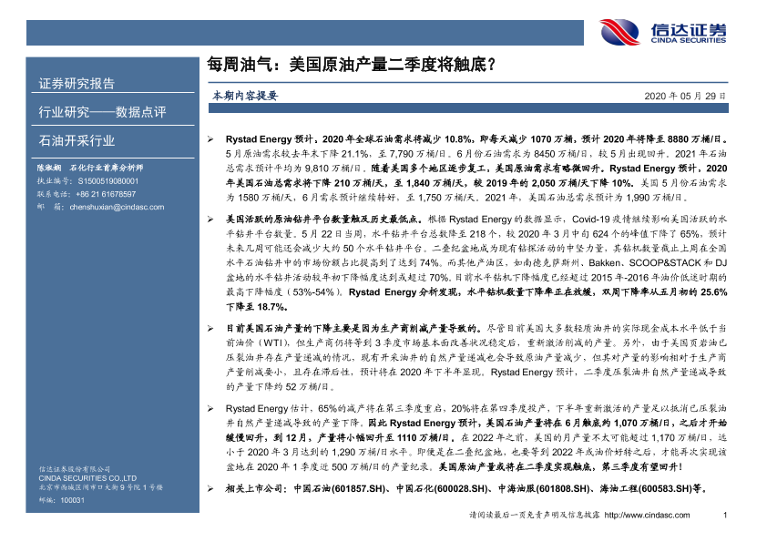 【信达证券】【20200529】每周油气:美国原油产量二季度将触底?-7页