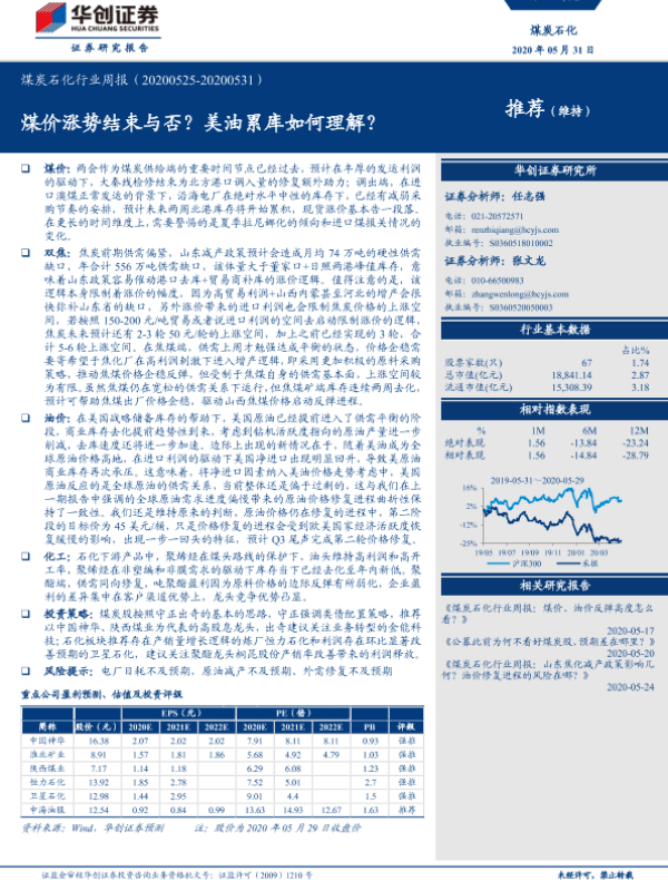 【华创证券】【20200531】20200531-华创证券-煤炭石化行业周报:煤价涨势结束与否?美油累库如何理解?-20页