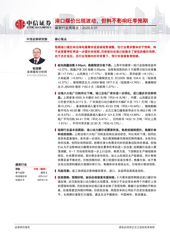 【中信证券】【20200531】20200531-中信证券-煤炭行业周观点:港口煤价出现波动,但料不影响旺季预期-7页