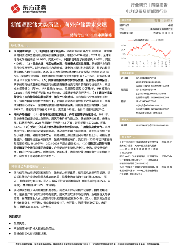 【东方证券】【20220616】储能行业2022年中期策略:新能源配储大势所趋,海外户储需求火爆-22页