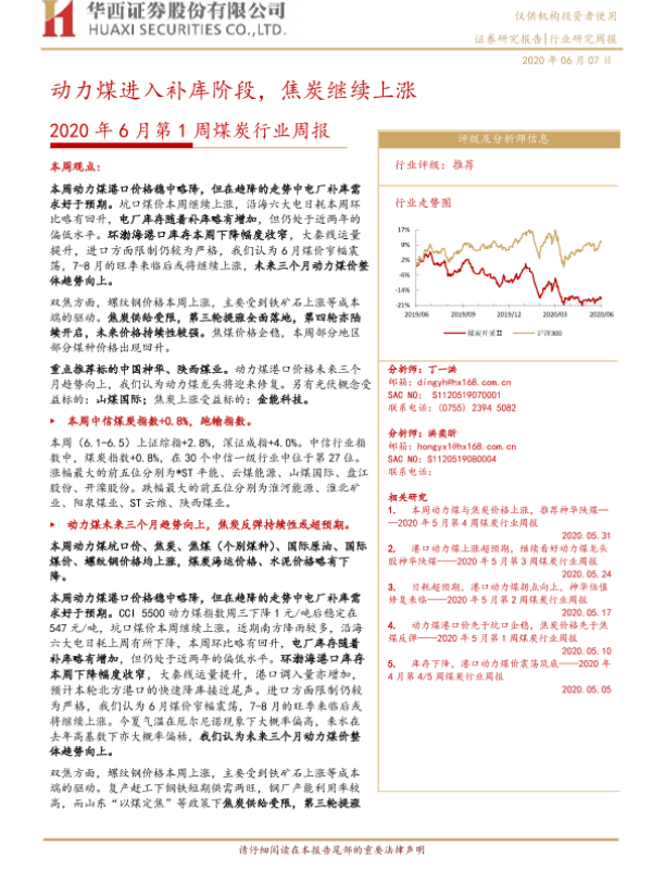 【华西证券】【20200607】2020年6月第1周煤炭行业周报:动力煤进入补库阶段,焦炭继续上涨-22页