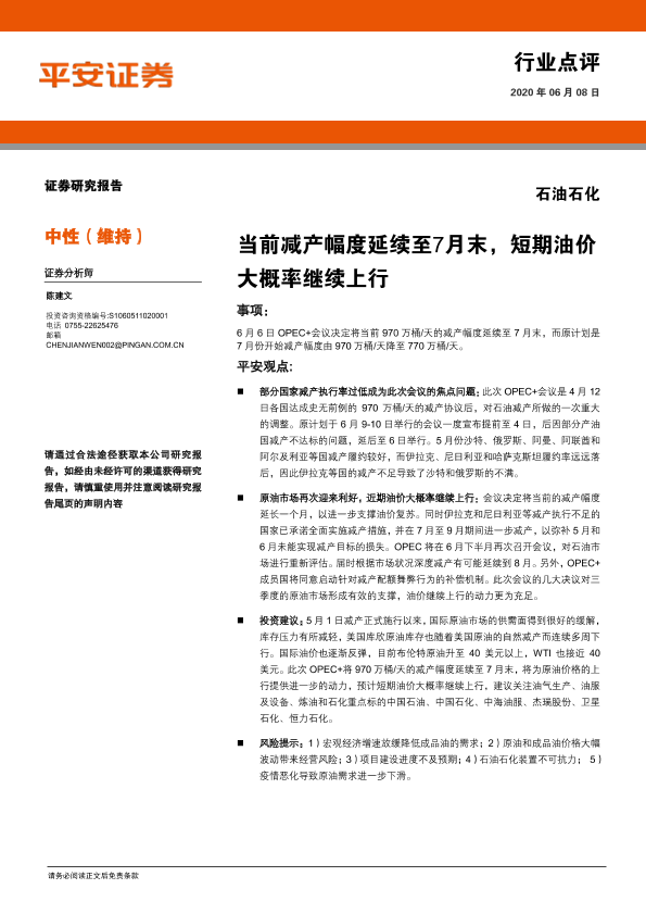 【平安证券】【20200608】石油石化:当前减产幅度延续至7月末,短期油价大概率继续上行-2页