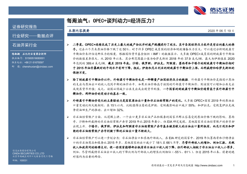 【信达证券】【20200619】每周油气:OPEC+谈判动力=经济压力?-8页