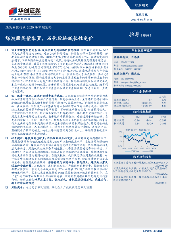 【华创证券】【20200614】煤炭石化行业2020年中期策略:煤炭股类债配置,石化股给成长性定价-23页