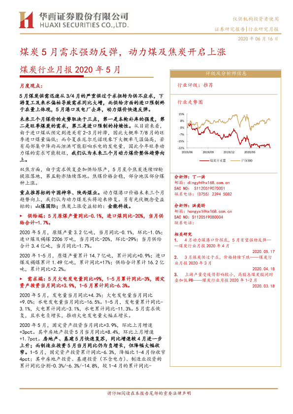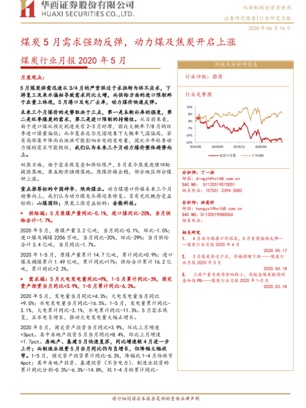 【华西证券】【20200616】煤炭行业月报2020年5月:煤炭5月需求强劲反弹,动力煤及焦炭开启上涨-20页