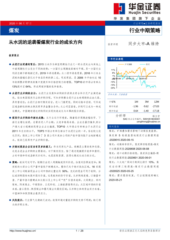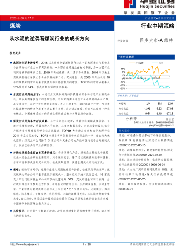【华金证券】【20200617】20200617-华金证券-煤炭行业中期策略:从水泥的逆袭看煤炭行业的成长方向-28页