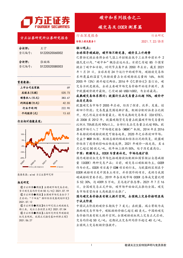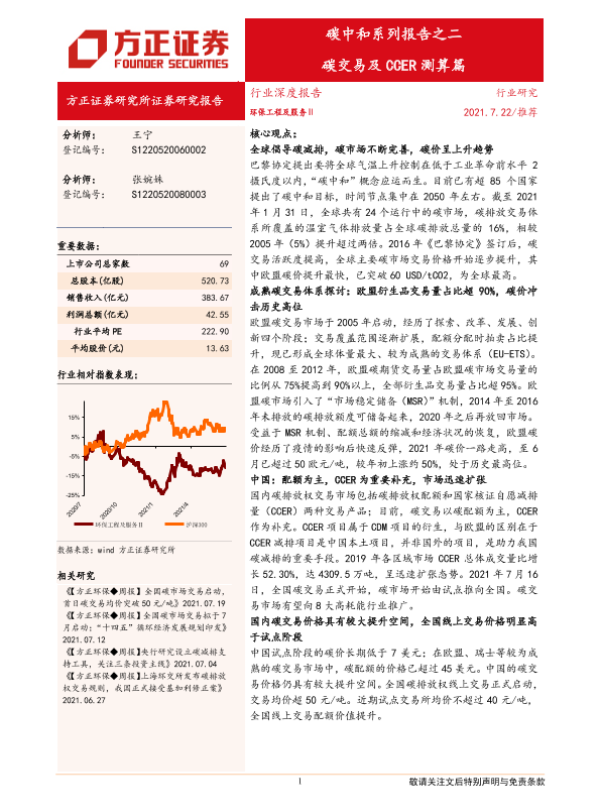 【方正证券】【20210722】环保工程及服务行业碳中和系列报告之二:碳交易及CCER测算篇-44页