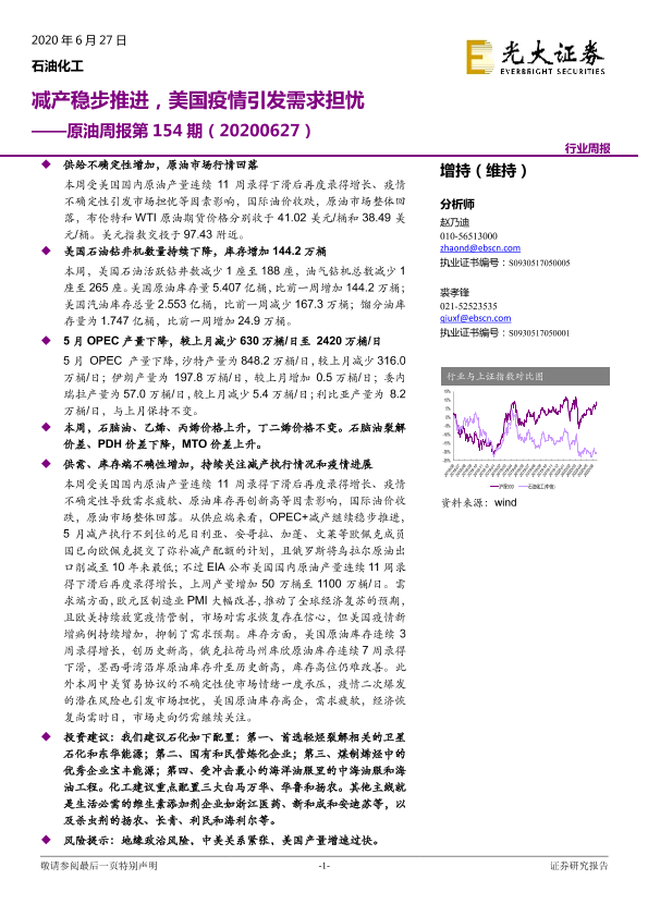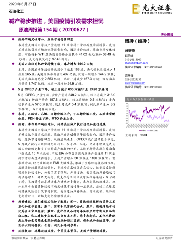 【光大证券】【20200627】20200627-光大证券-原油周报第154期:减产稳步推进,美国疫情引发需求担忧-12页