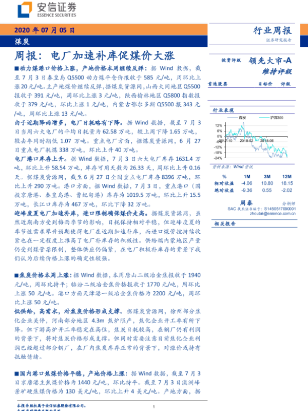 【安信证券】【20200705】20200705-安信证券-煤炭周报:电厂加速补库促煤价大涨-28页